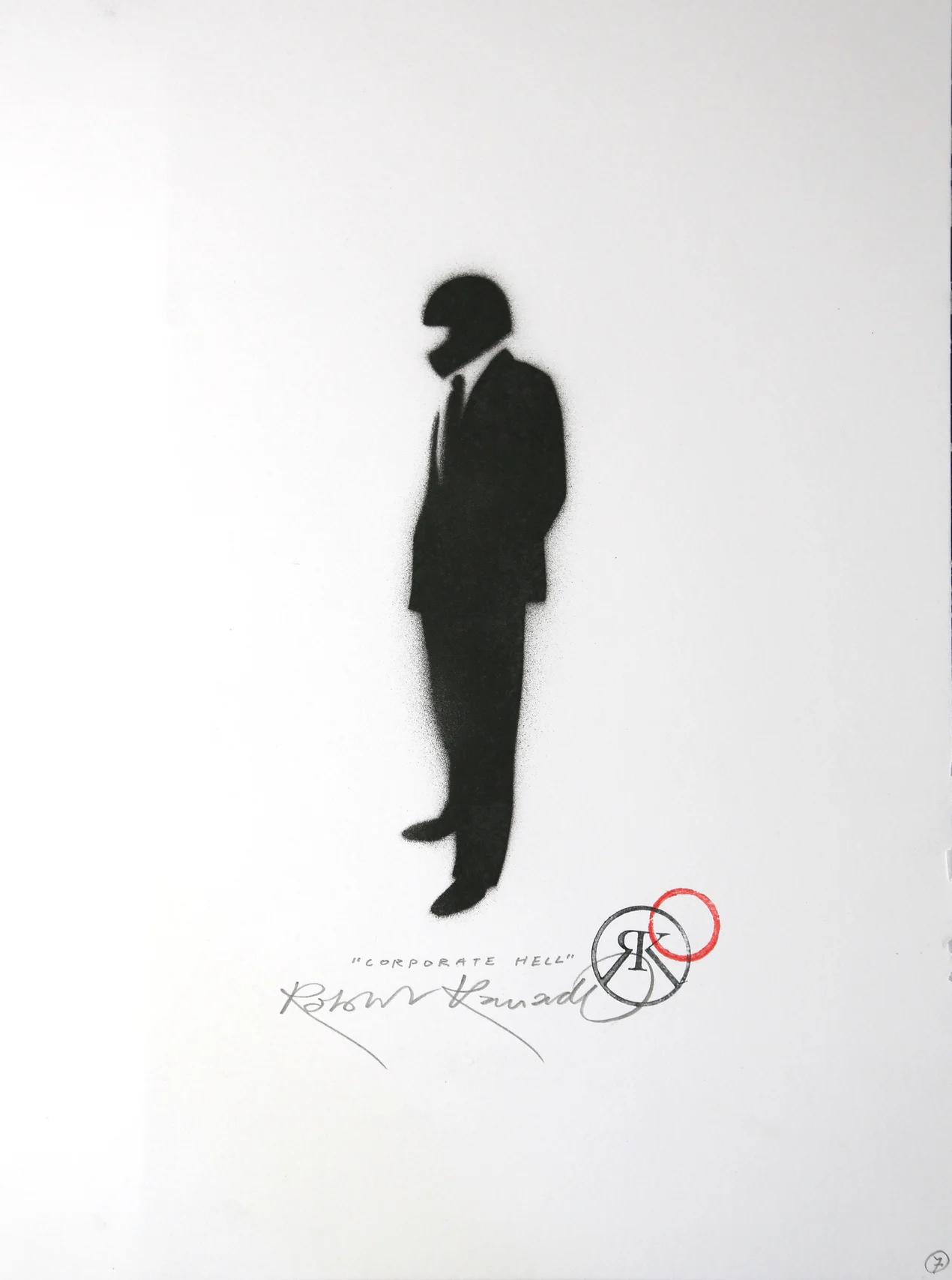 . Spray paint on 360-gram paper, 30cm x 40cm, signed and stamped.