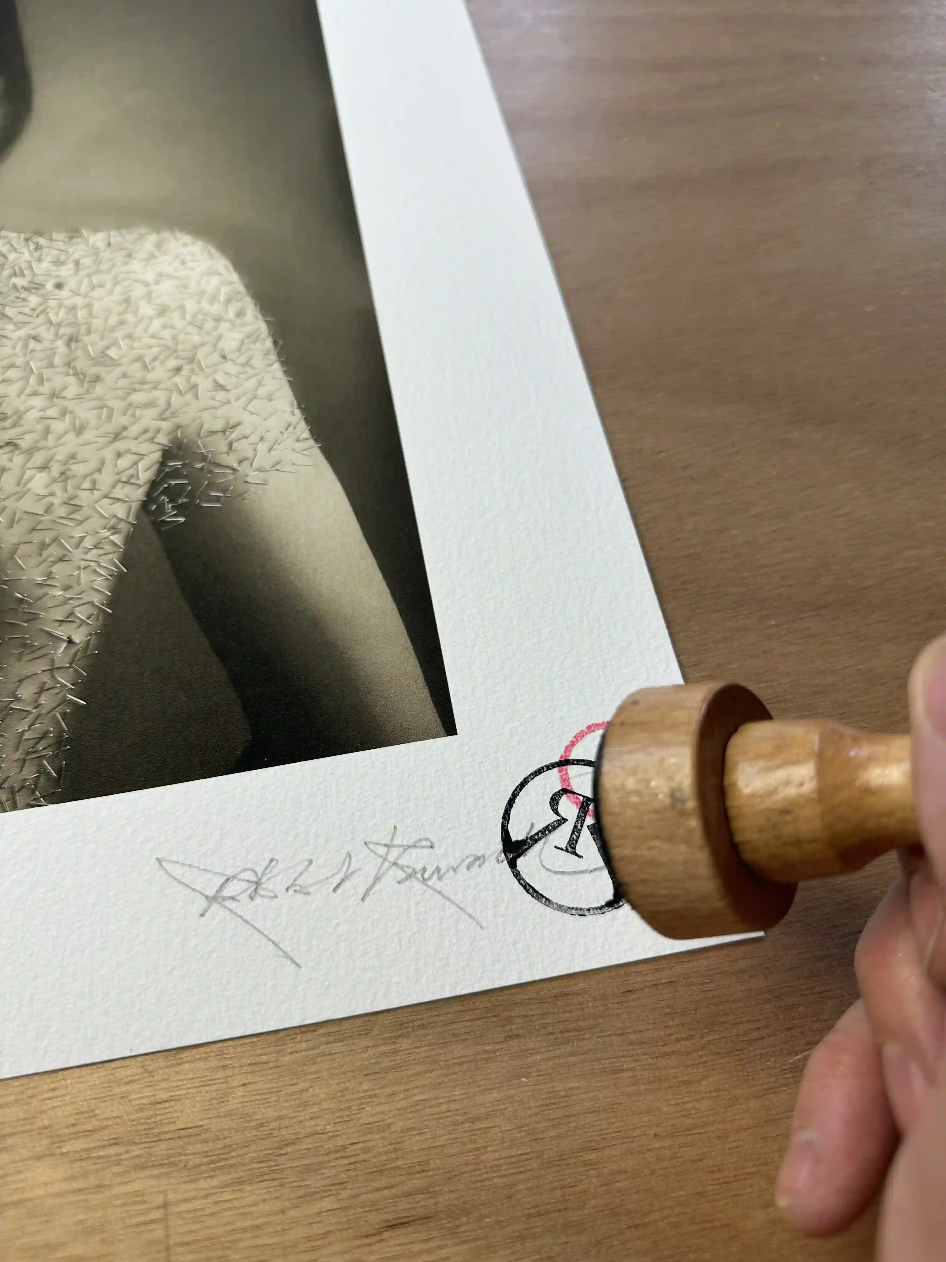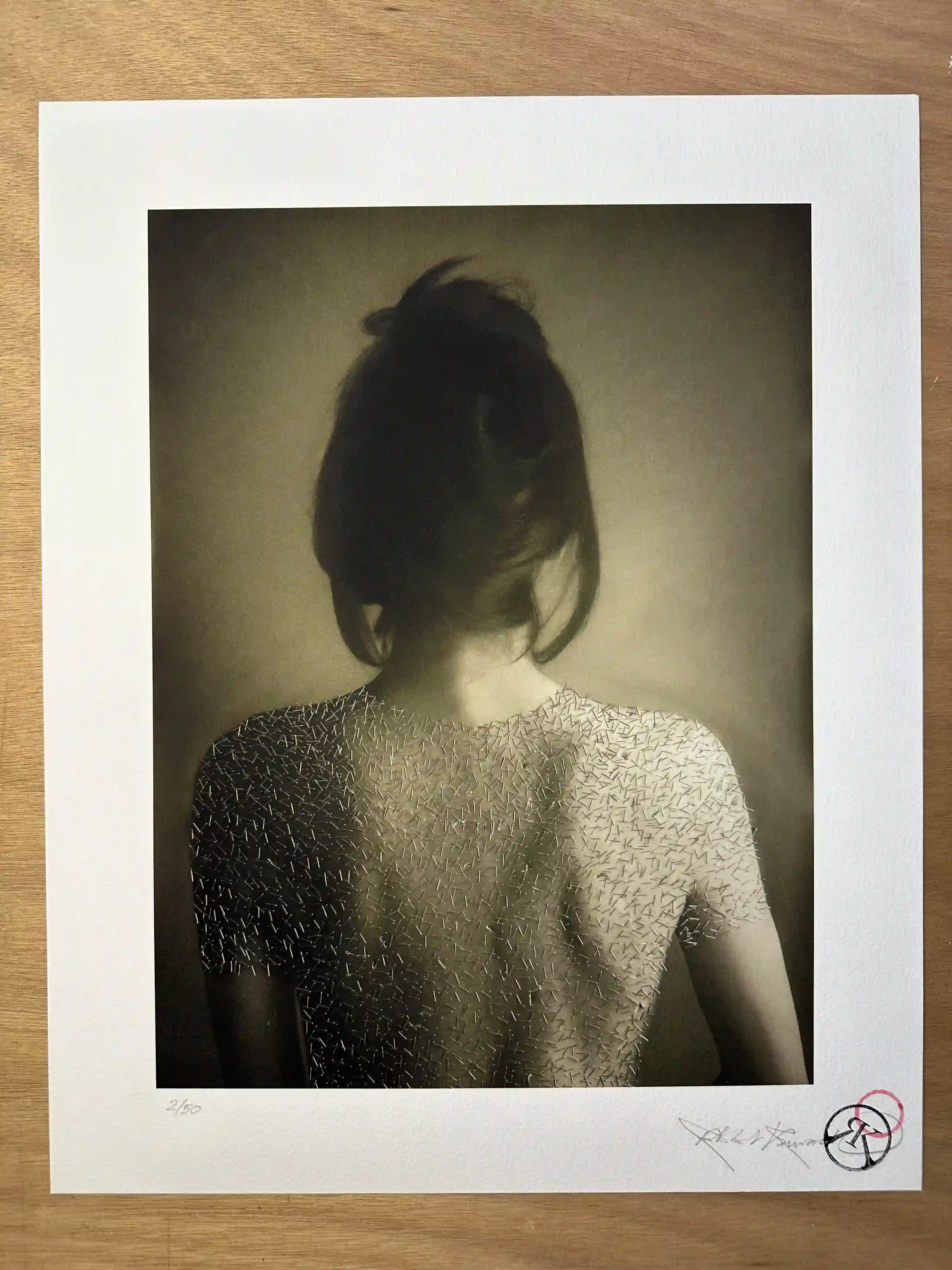 “Stapled Silk” Printed on luxurious Hahnemühle William Turner paper, each artwork features a 5cm white border, with the motif sized at 50 x 66 cm and overall dimensions of 60 x 76 cm. Signed and stamped.