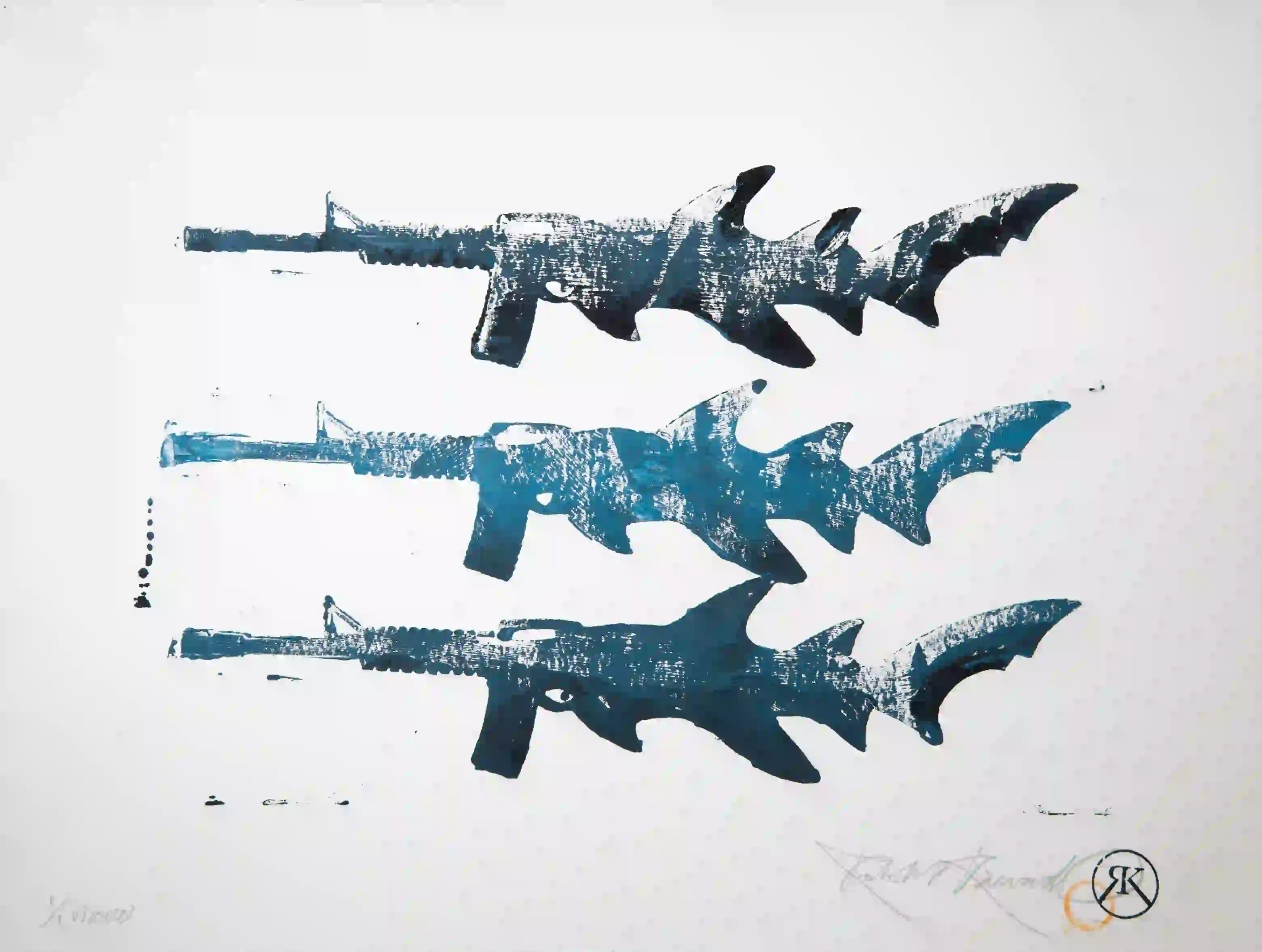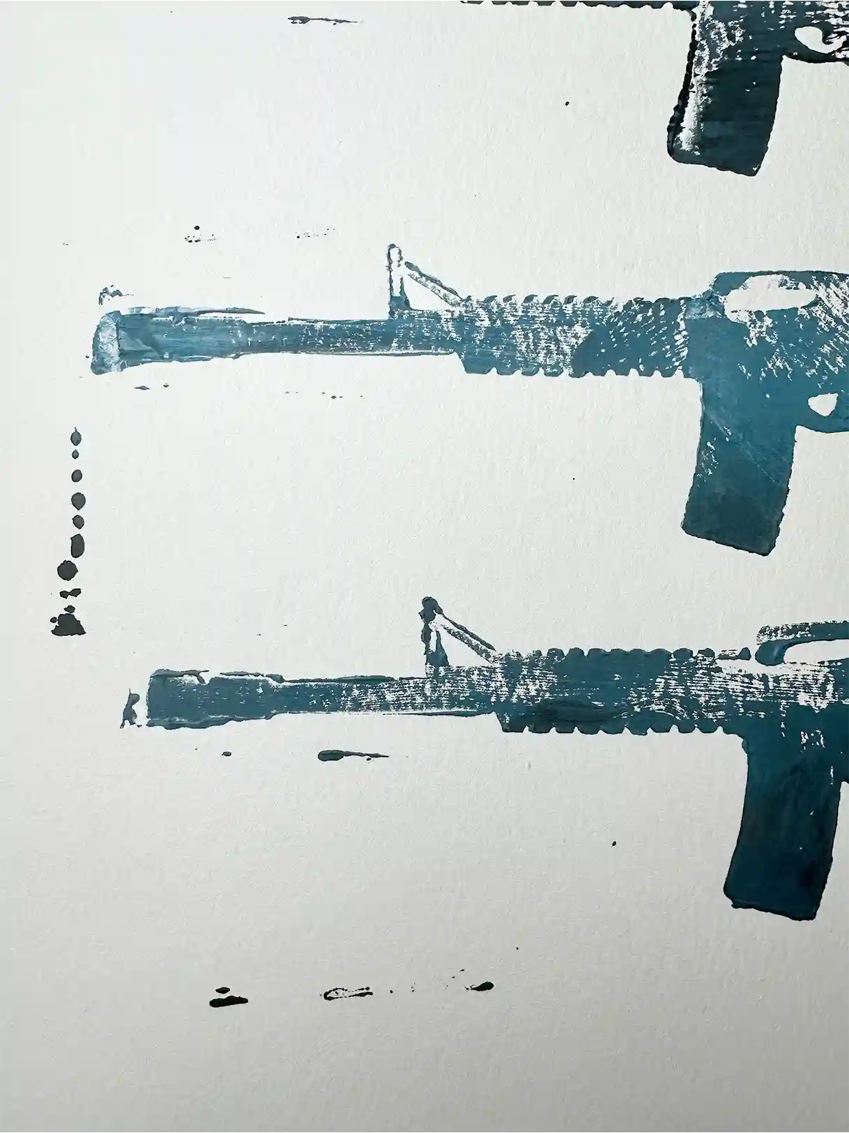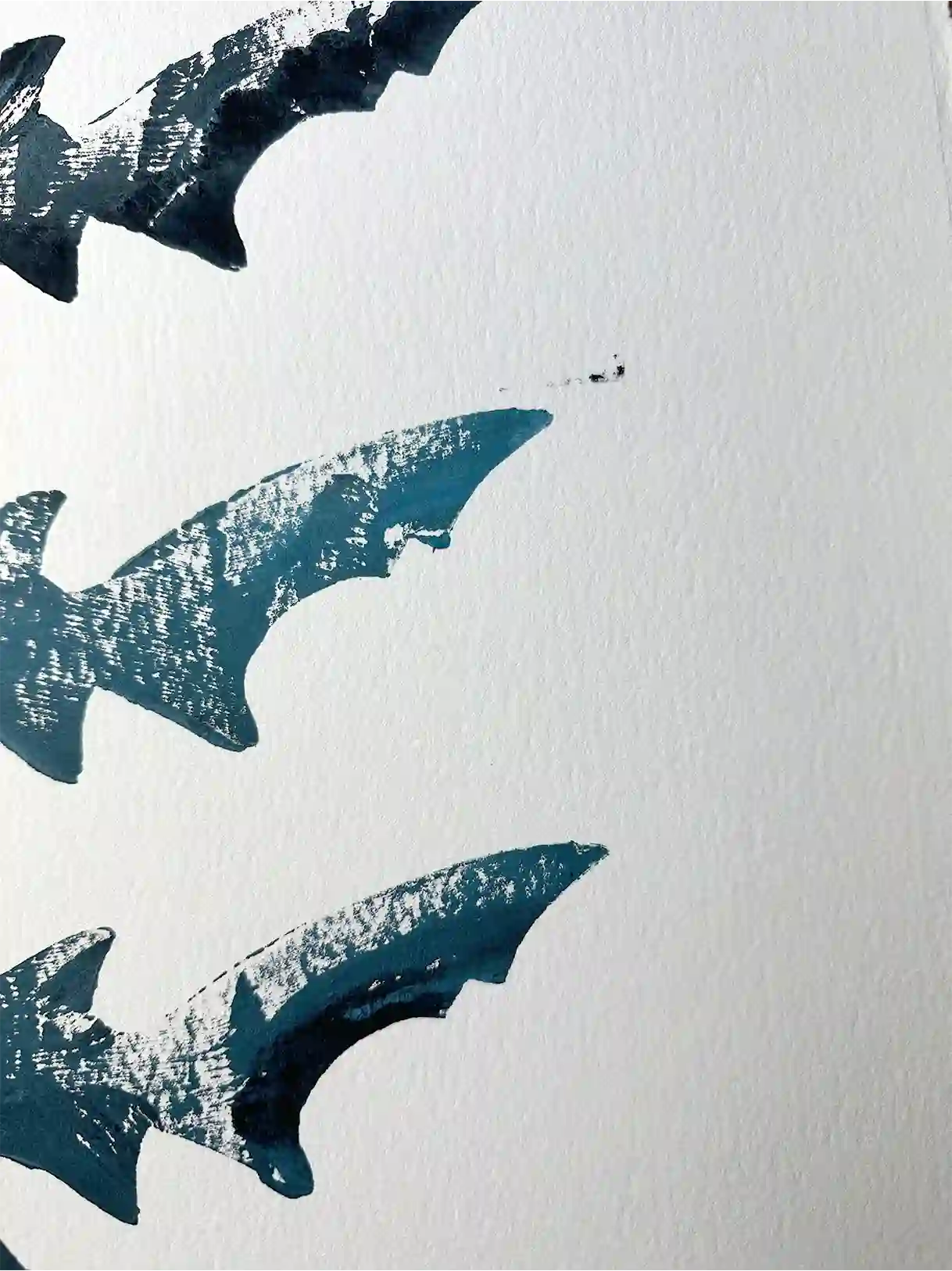 I created a lino cut and printed these unique artworks using acrylic paint. Each piece is a monoprint - one of a kind - and there are only 11 in existence, making the Gun-Fish a truly rare breed.