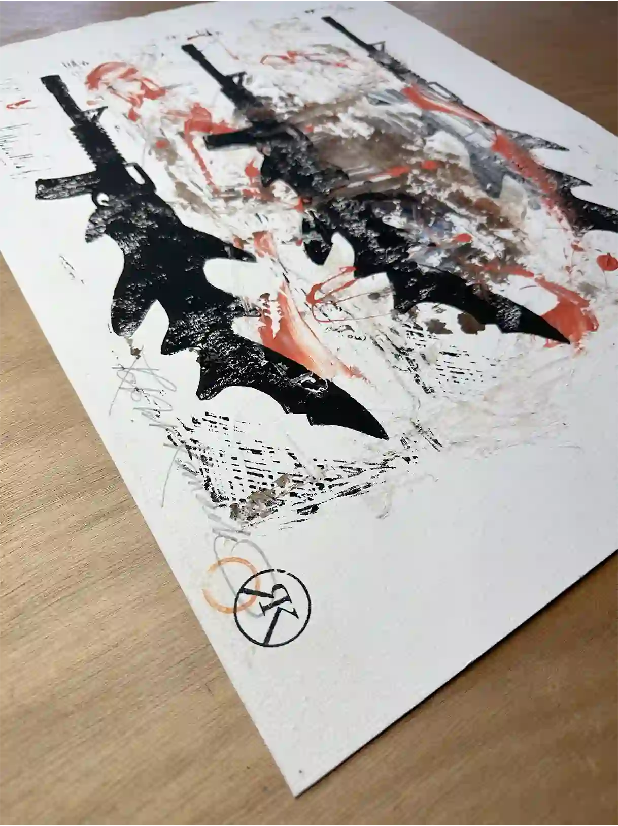 I created a lino cut and printed these unique artworks using acrylic paint. Each piece is a monoprint - one of a kind - and there are only 11 in existence, making the Gun-Fish a truly rare breed.