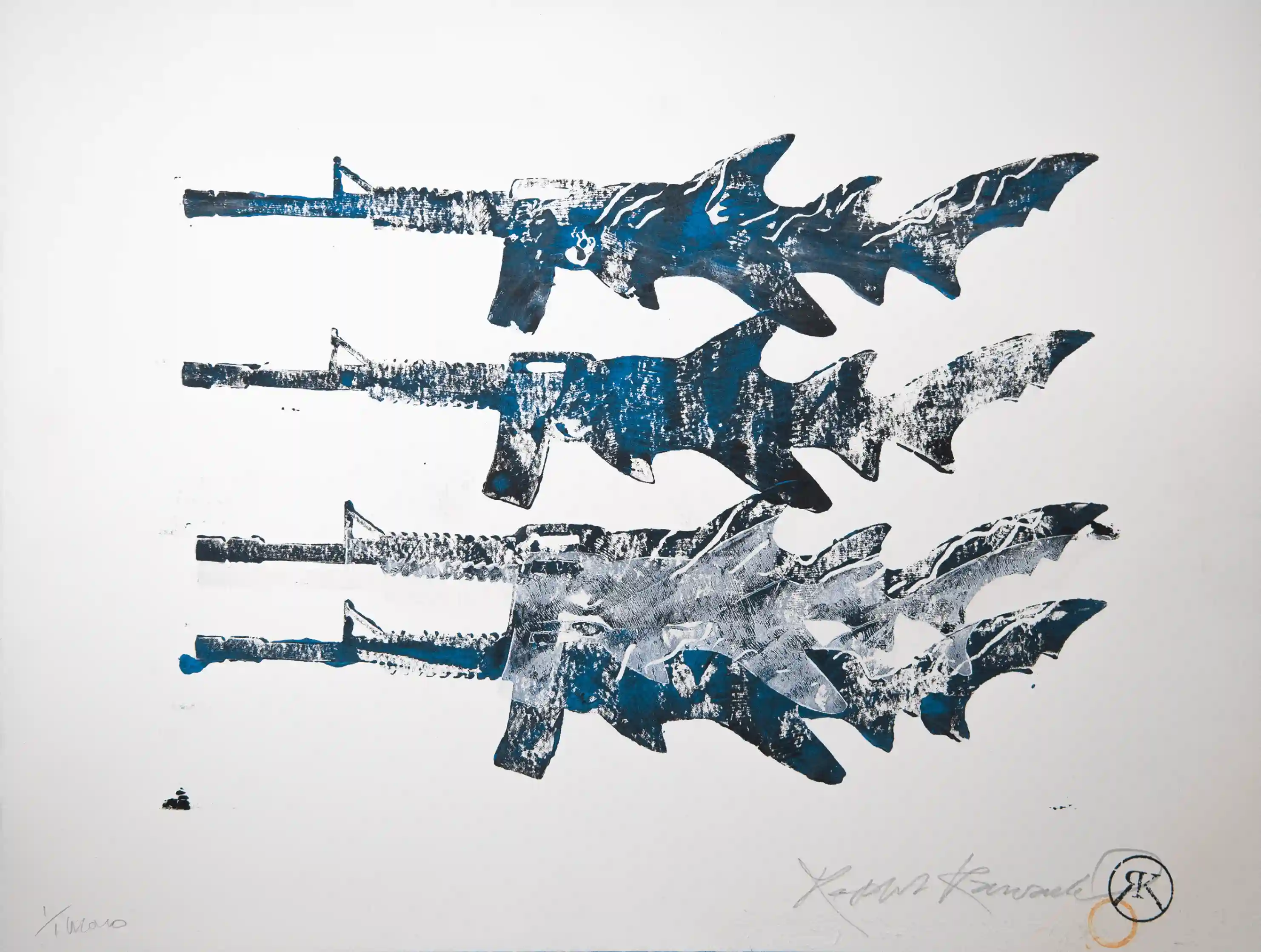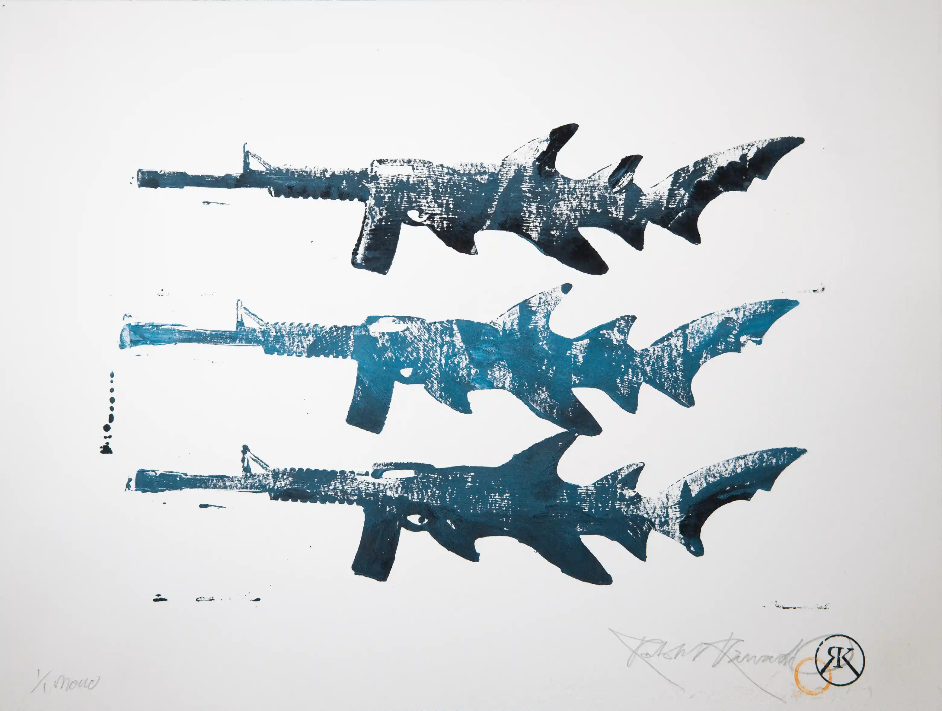 One day, while absentmindedly doodling during a phone call, I began sketching fish with gun-shaped heads. I can’t recall what the call was about, but that moment sparked the birth of the Gunfish.