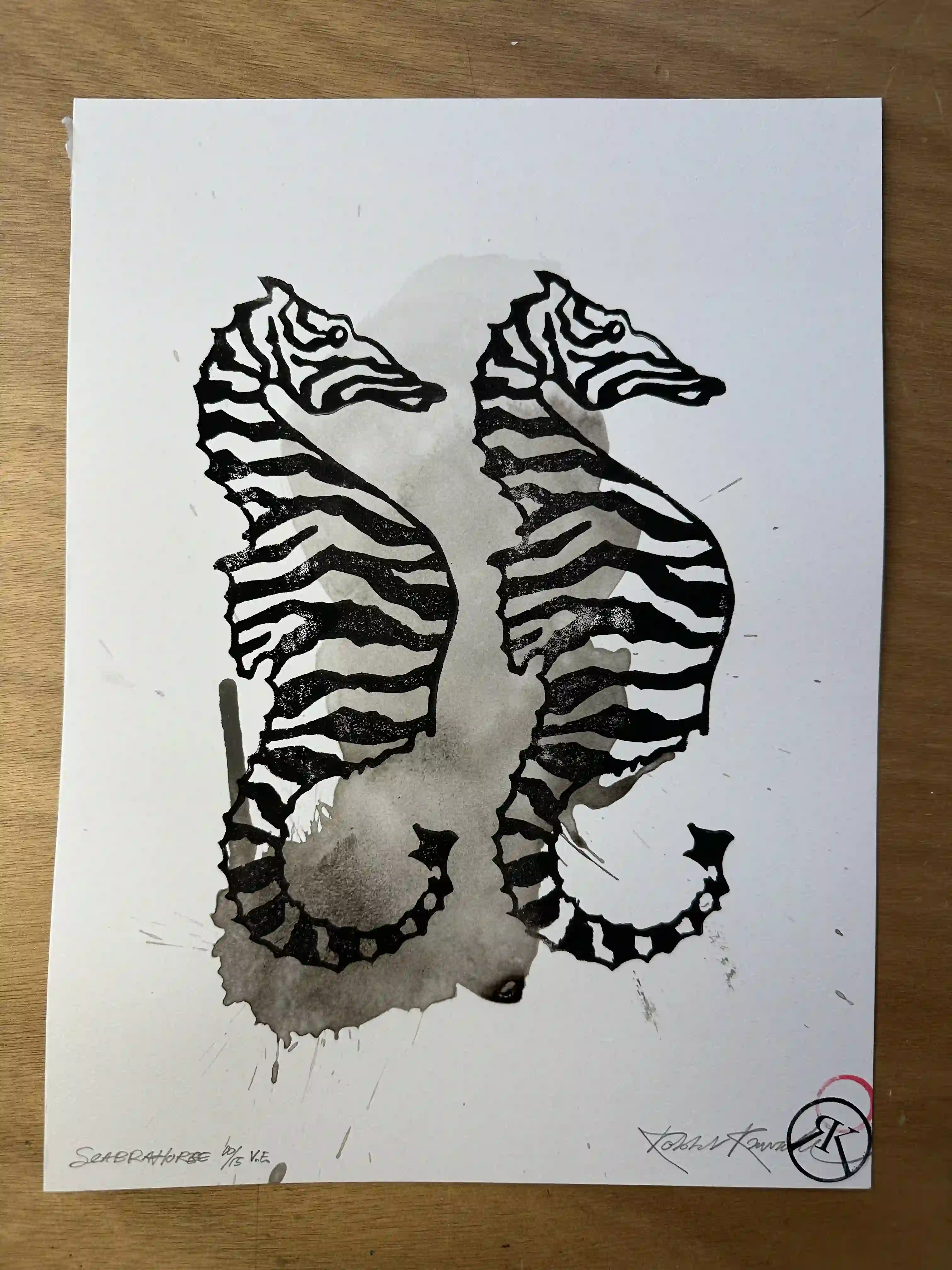 “Seabrahorse” linocut print & Indian ink on 360-gram paper, 30x40 cm, edition 10/14, signed and stamped.