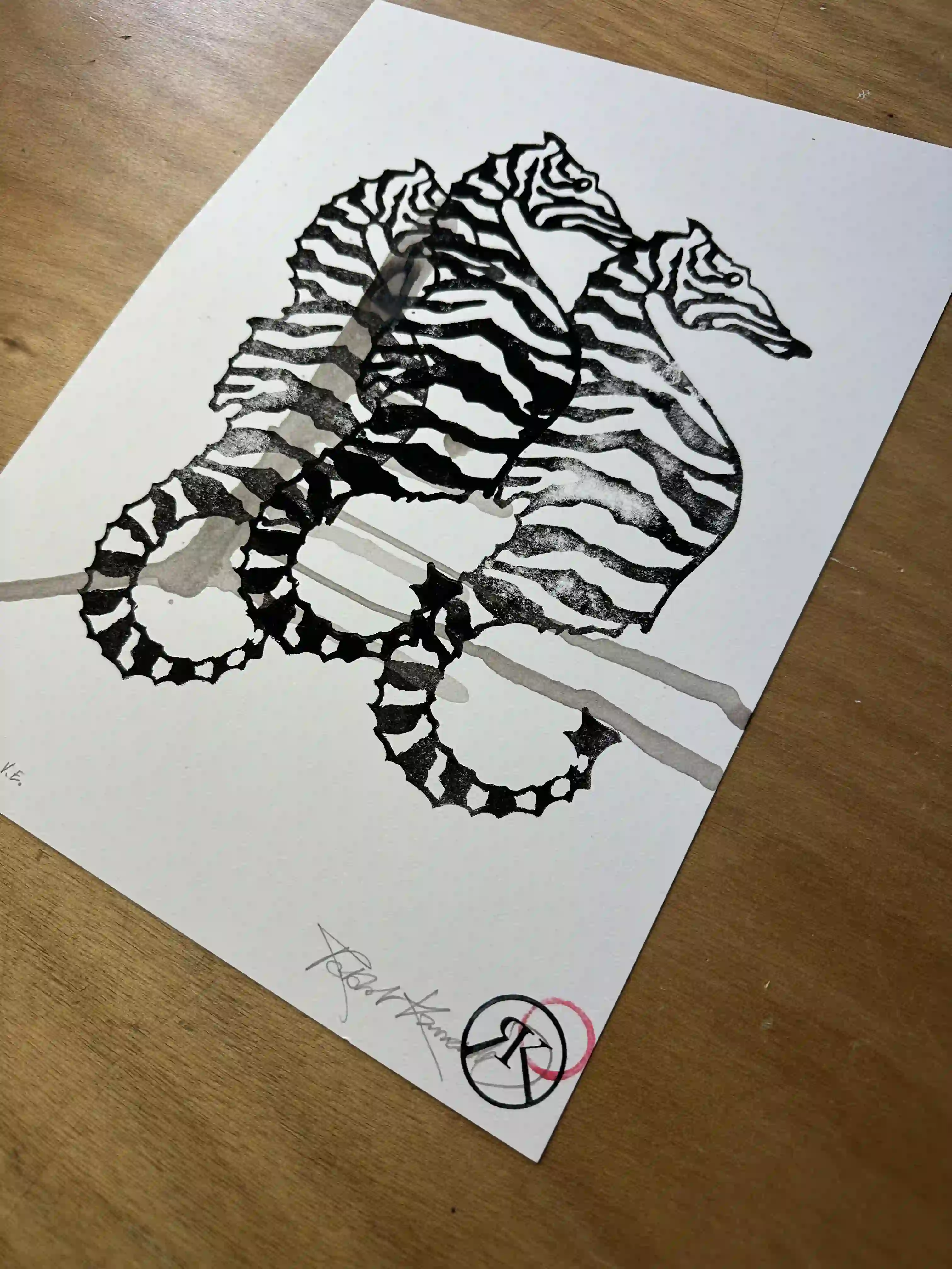 “Seabrahorse” linocut print & Indian ink on 360-gram paper, 30x40 cm, edition 11/14, signed and stamped.