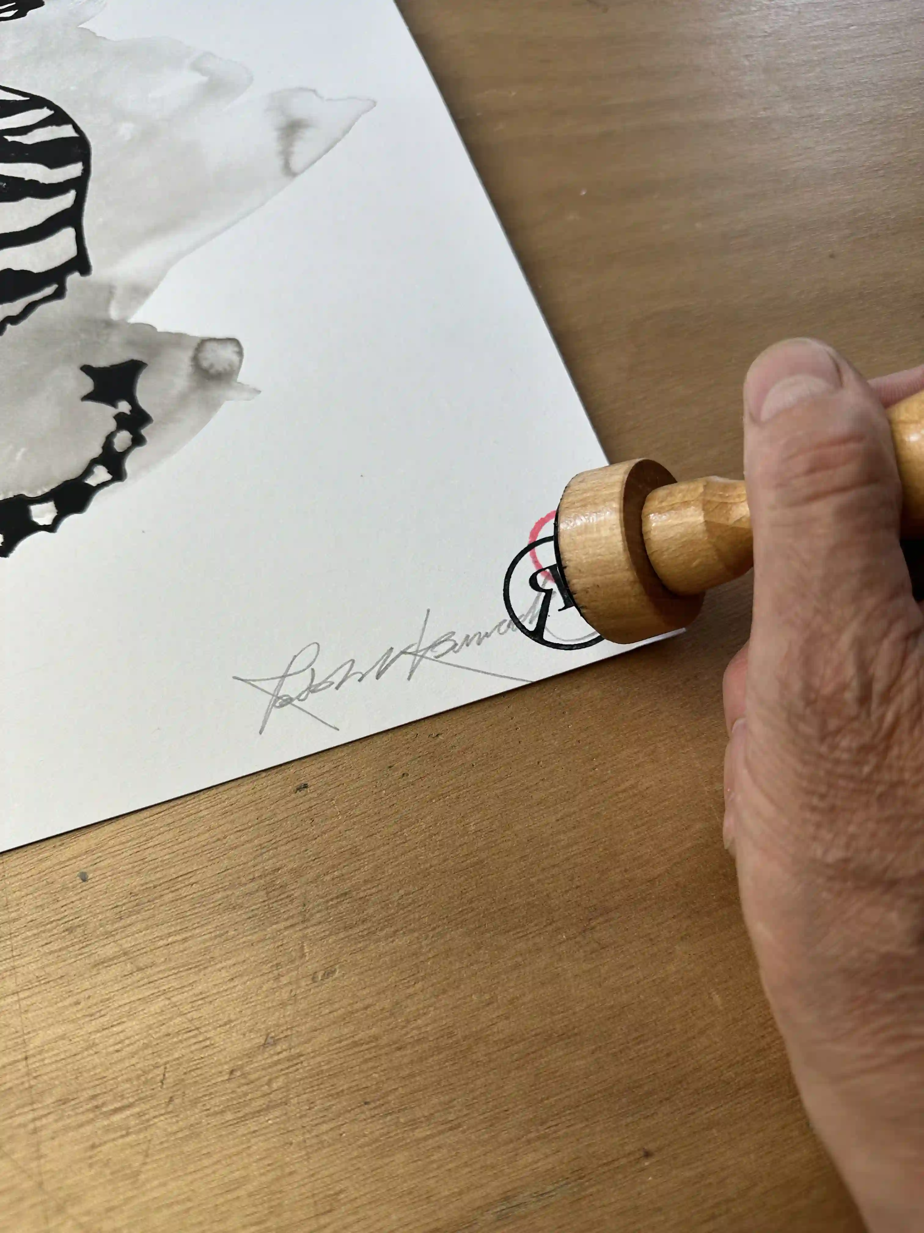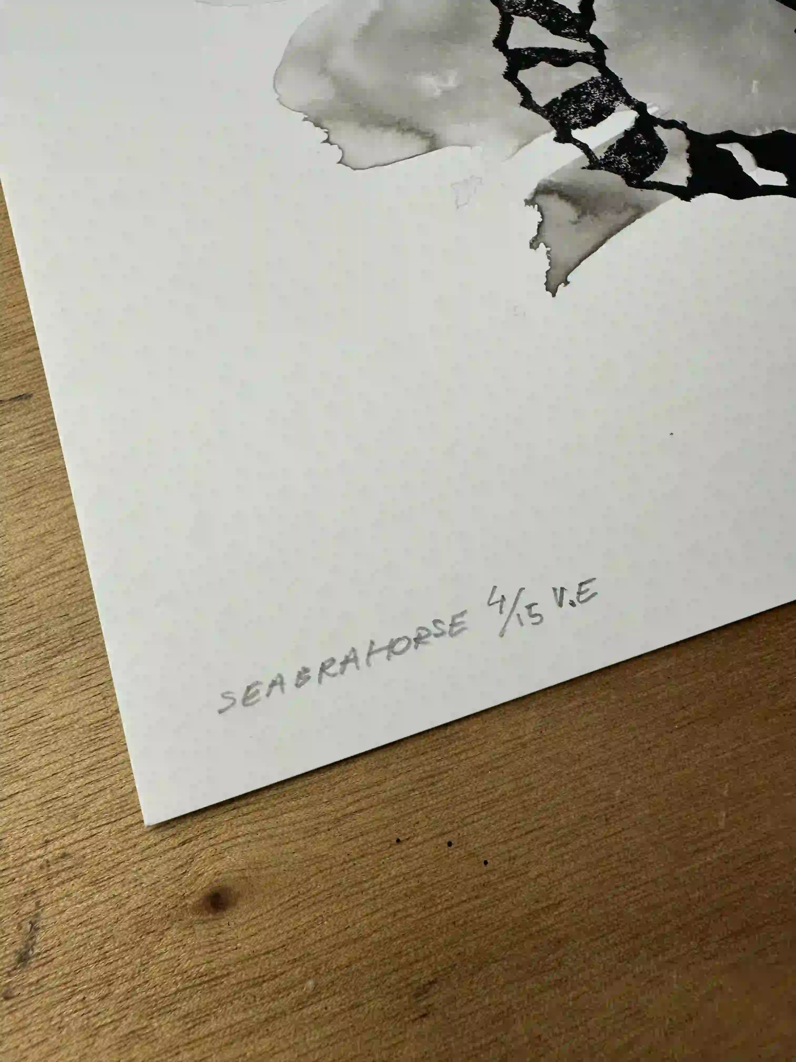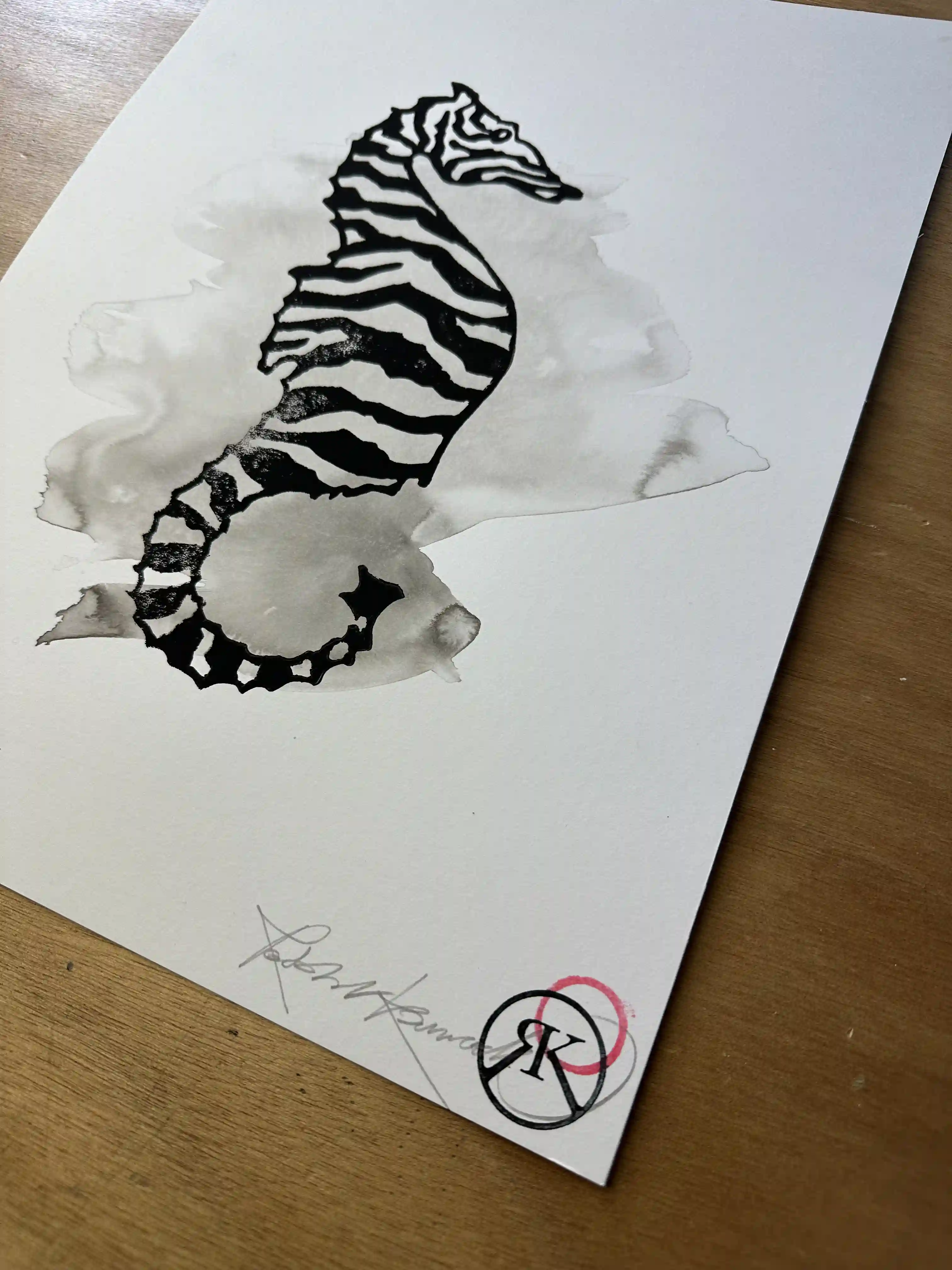 “Seabrahorse” linocut print & Indian ink on 360-gram paper, 30x40 cm, edition 4/14, signed and stamped.