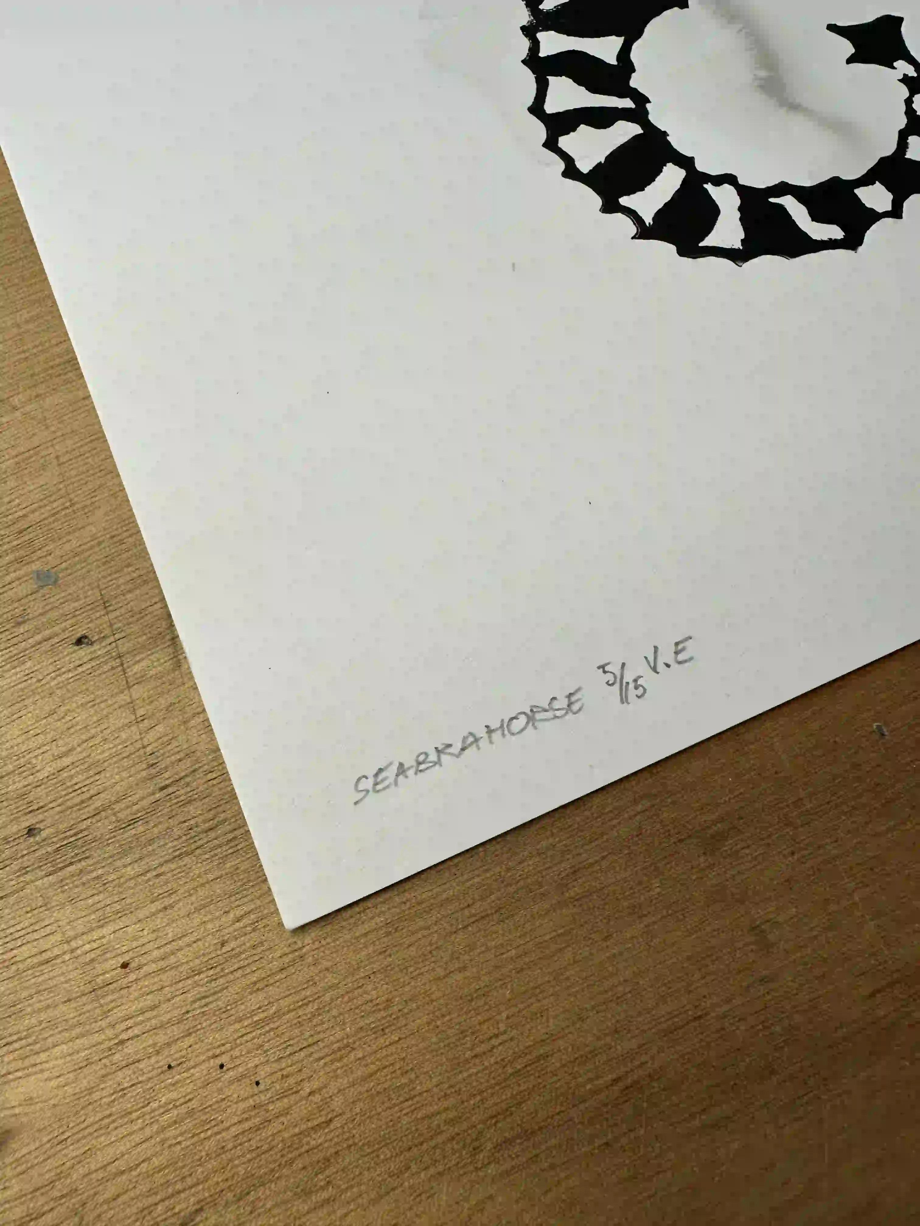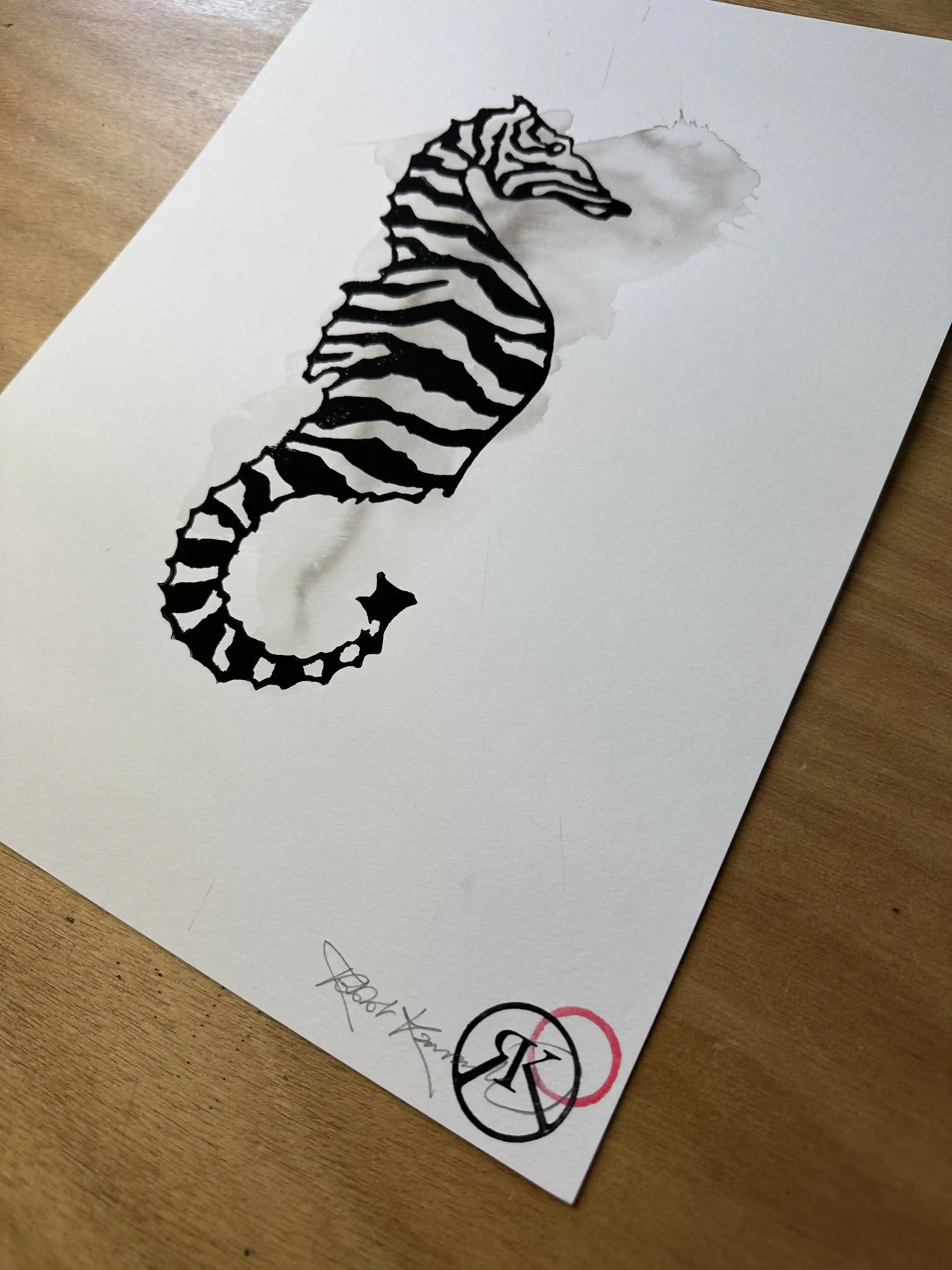 “Seabrahorse” linocut print & Indian ink on 360-gram paper, 30x40 cm, edition 5/14, signed and stamped.