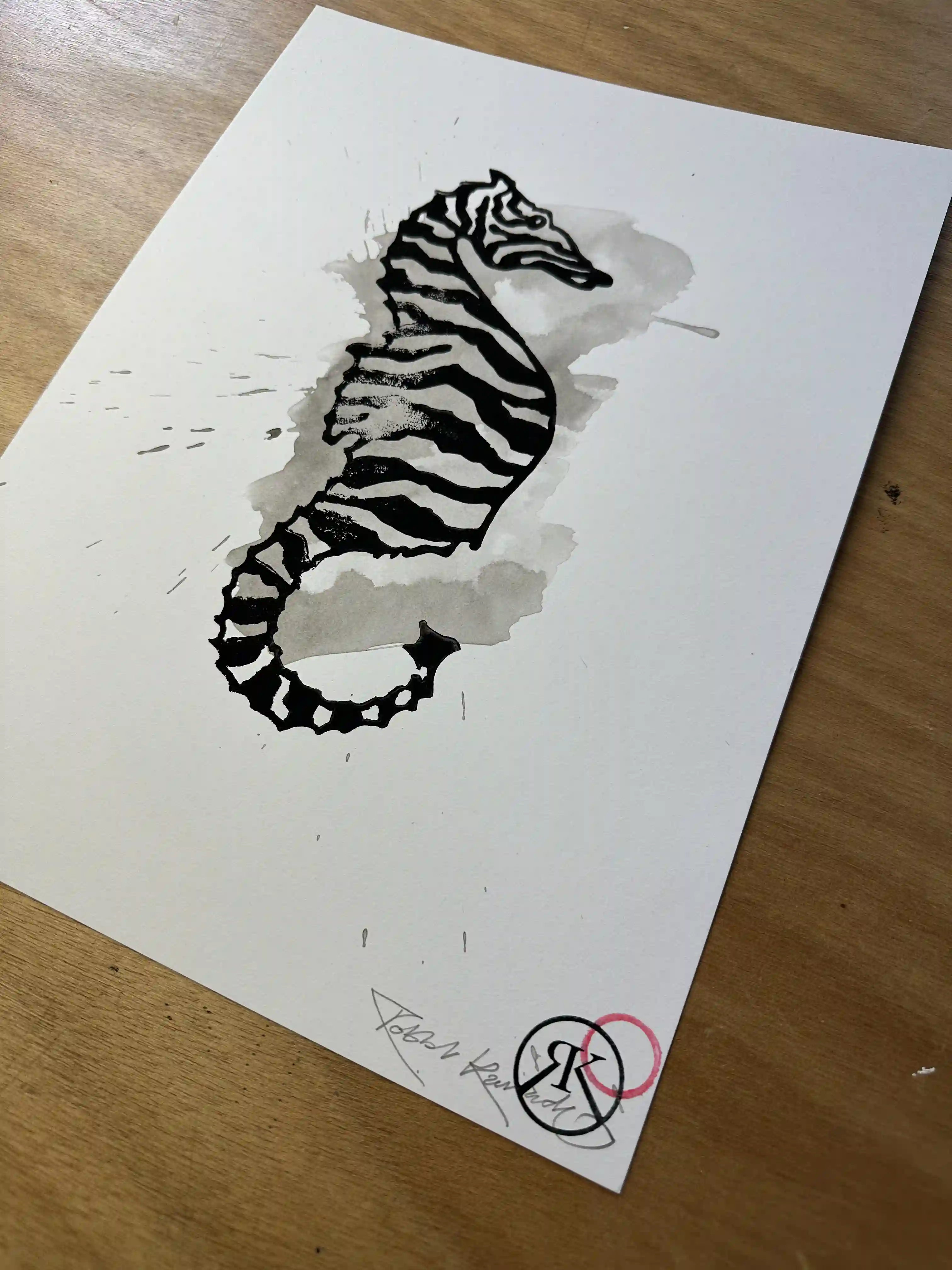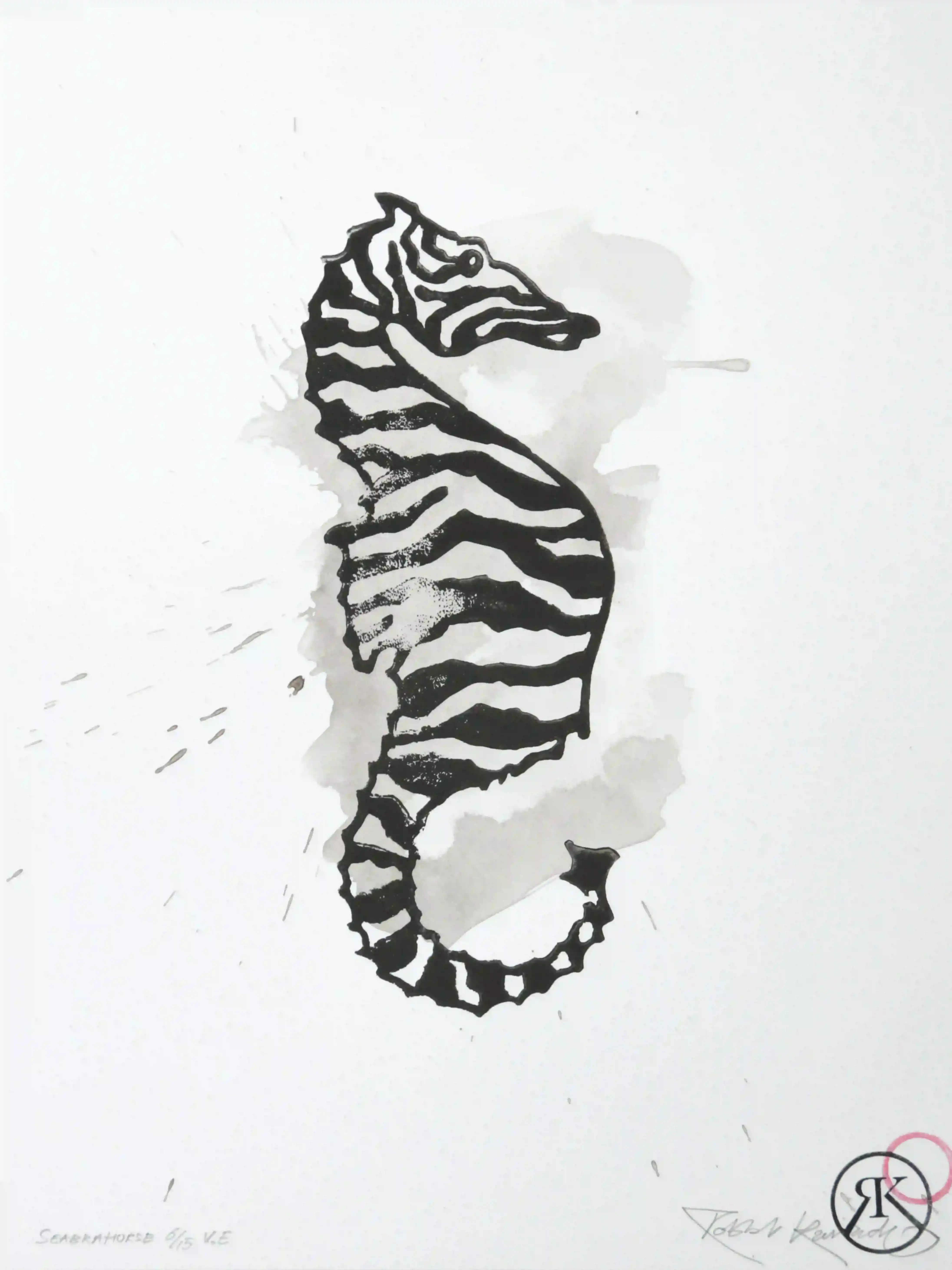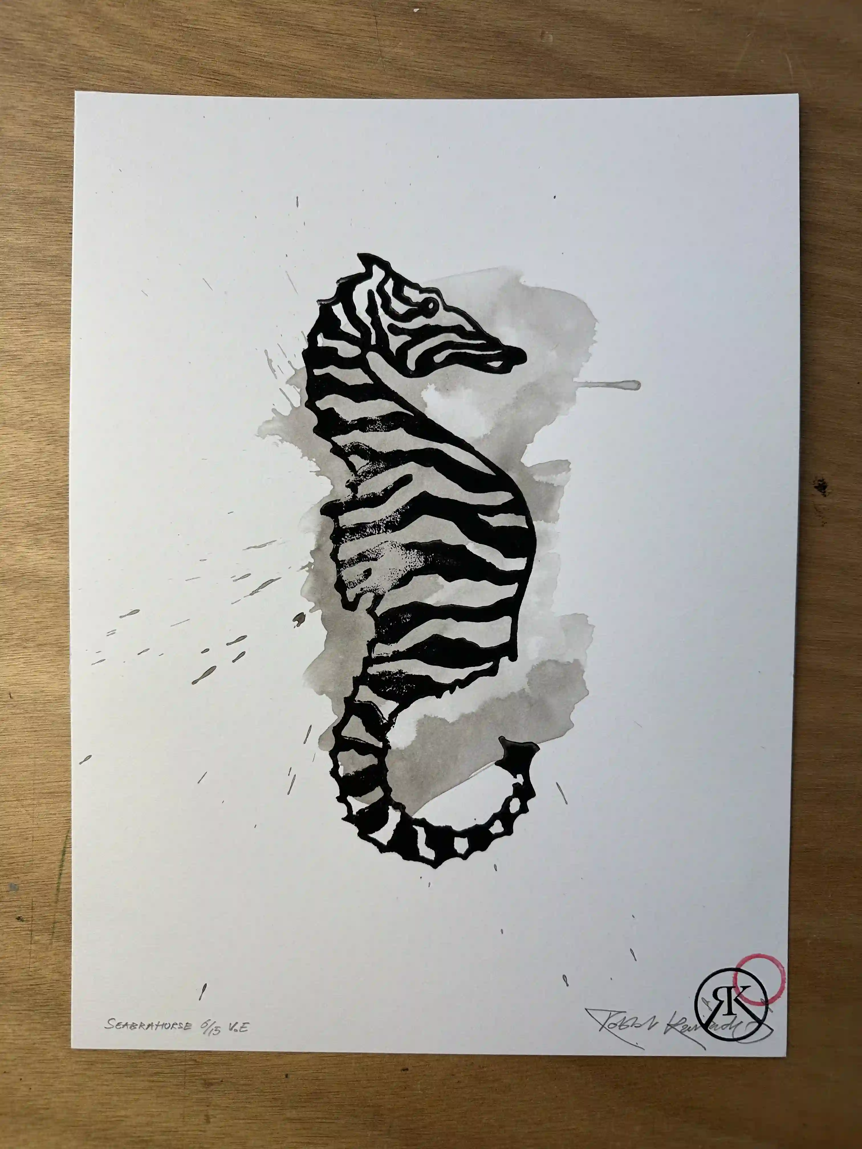 “Seabrahorse” linocut print & Indian ink on 360-gram paper, 30x40 cm, edition 6/14, signed and stamped.