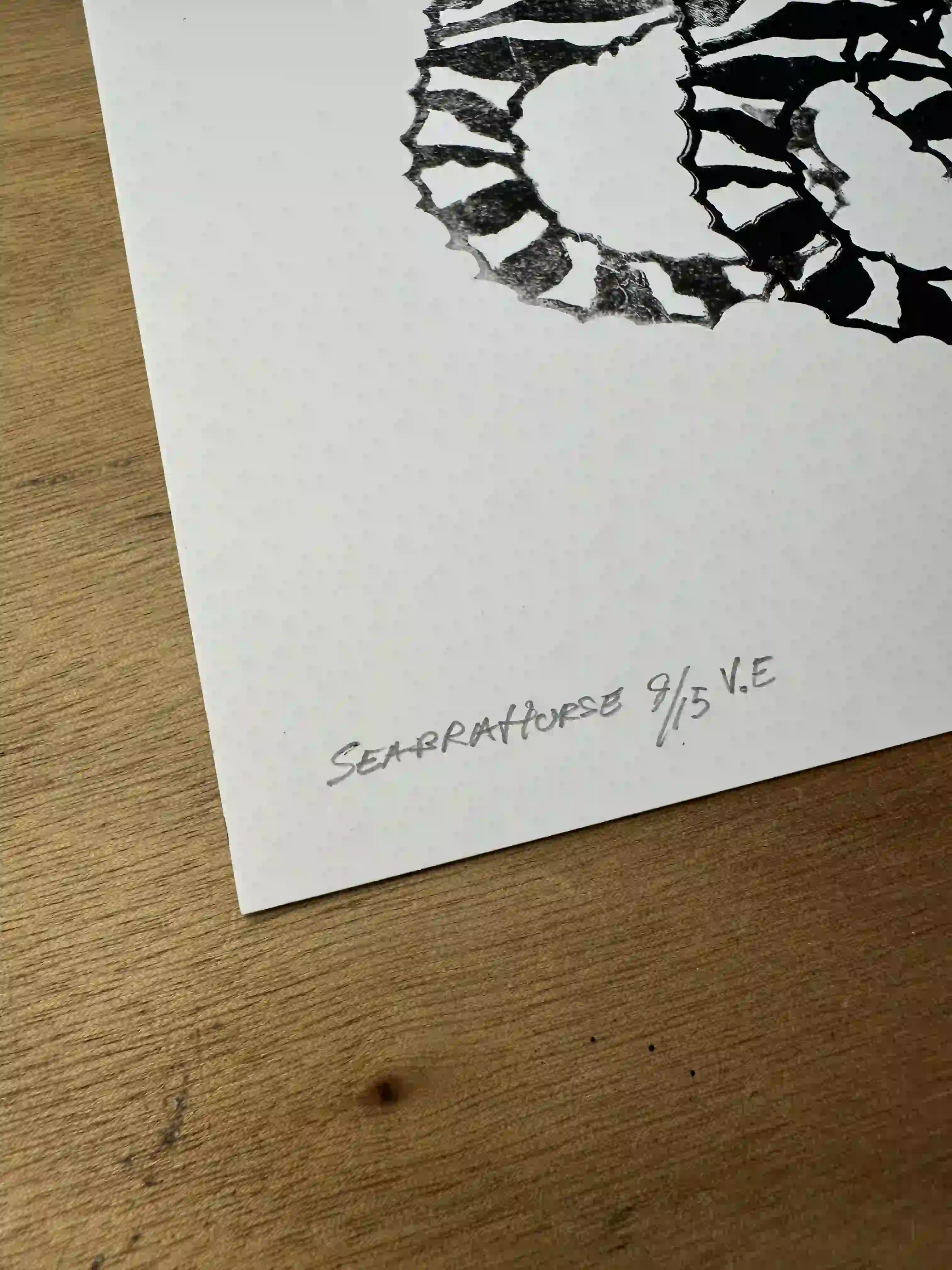 “Seabrahorse” linocut print & Indian ink on 360-gram paper, 30x40 cm, edition 9/14, signed and stamped.